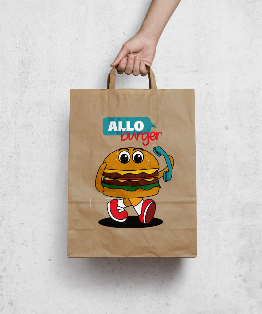 Il s’agit de la création d’une identité graphique percutante pour une enseigne de fast food. Allo Burger propose un concept unique qui repose sur la vente de burgers ainsi que sur un service de livraison jusqu’à une heure de route, garantissant des burgers qui arrivent toujours chauds grâce à un camion innovant équipé d’un réchaud.